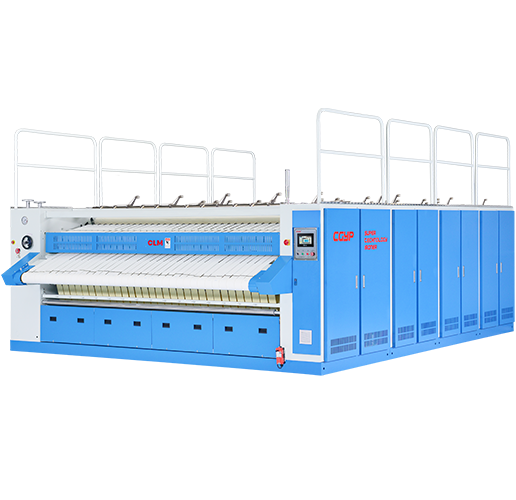 速度快---最高可達60米/分鐘 能耗低---含水率在40%內(nèi),床單蒸汽耗量約270公斤/小時,耗電約3度/小時 效率高---跟CLM展布機、快速折疊機配套使用,每小時床單最高可達1200條,被套可達750條
