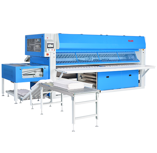 The maximum folding speed can reach 60 m/min, for bed sheets max folding quantity is 1200 sheets. CLM rapid folder with CLM spreading feeder and high-speed ironing lines can realize program communication linkage function