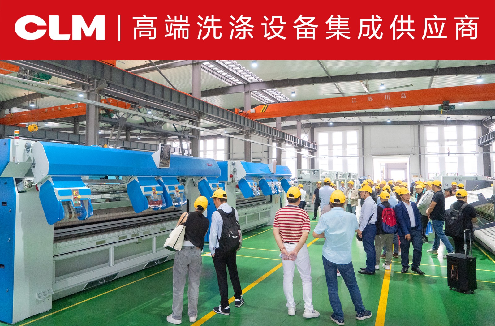 在洗滌龍和后整理熨燙線的展示區(qū)域,參觀團體會了江蘇川島如何通過高度自動化的設備,實現(xiàn)大規(guī)模高效洗滌和熨燙的工作流程。這些先進的設備不僅提升了生產(chǎn)效率,而且通過創(chuàng)新的科技設計,大大提高了洗滌質(zhì)量和熨燙效果,并且降低了能源的消耗量。