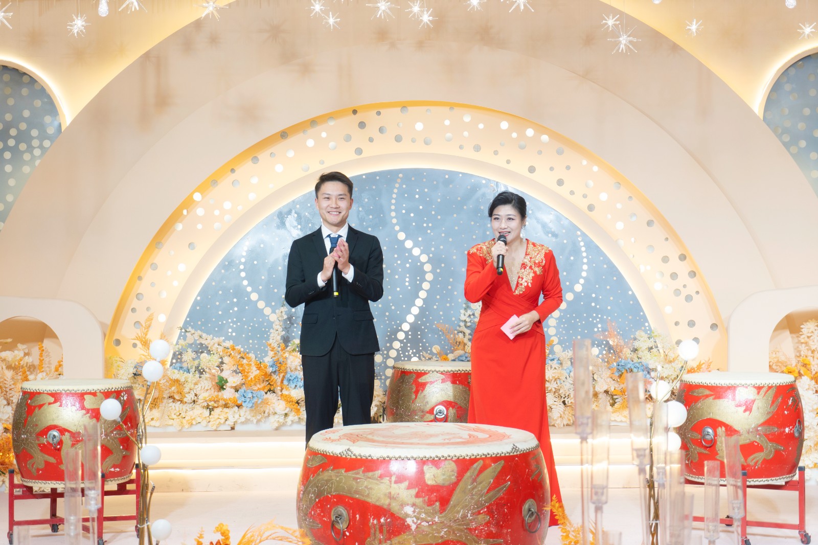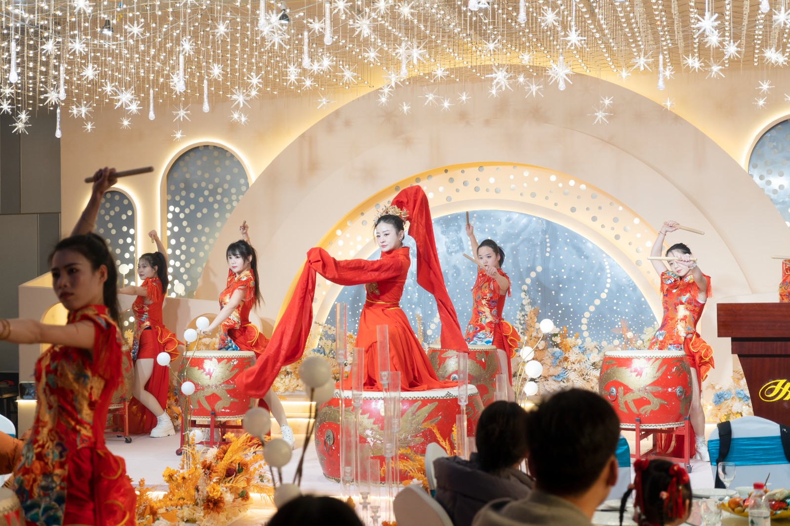 國逢盛世氣運(yùn)勃勃、人逢盛世喜氣多多、業(yè)逢盛世紅紅火火!年會以一場紅紅火火的鼓上舞《龍騰虎躍》完美開場,主持人盛裝登臺,為川島家人送上新年祝福。
