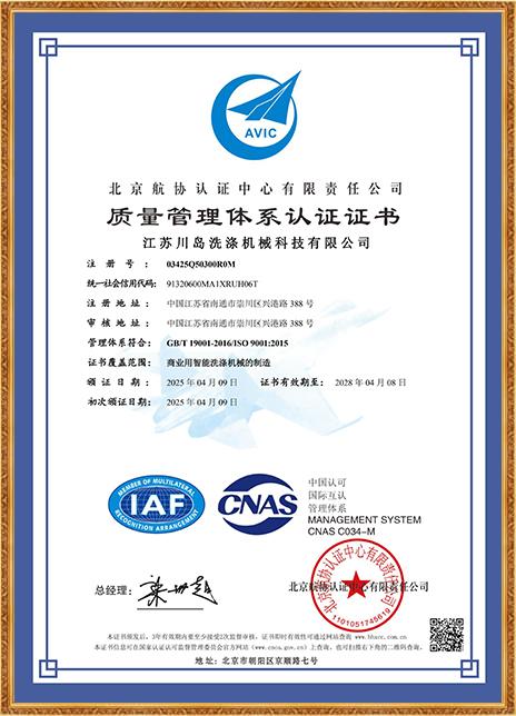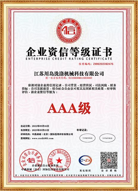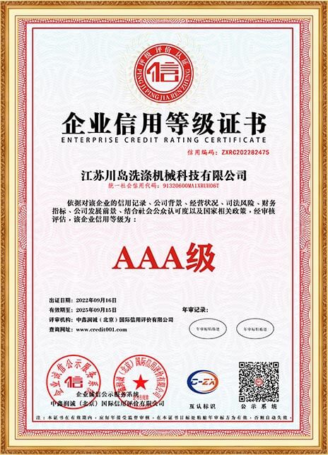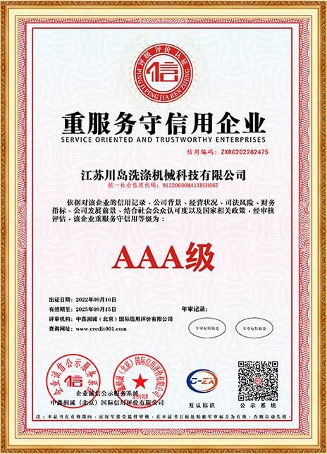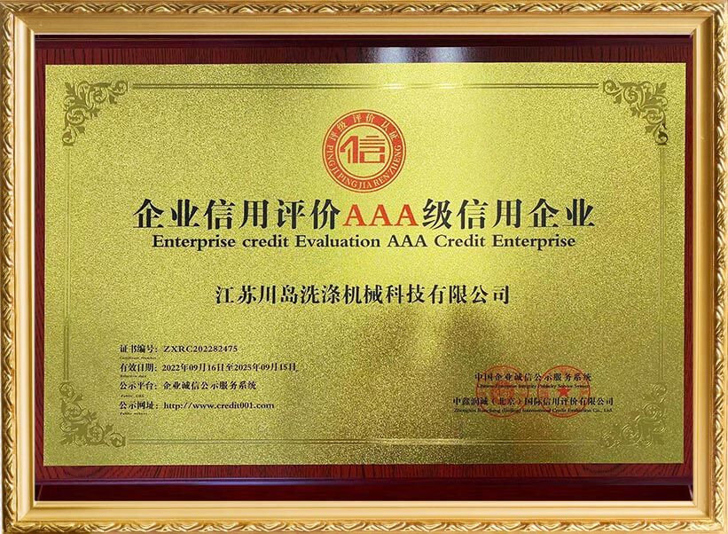 川島近年來獲得多項權威標準和認證,諸如中國洗滌機械行業(yè)十強企業(yè),中國輕工業(yè)裝備制造行業(yè)五十強企業(yè),AAA級信用企業(yè),韓國KC、歐盟KC證書,多項國家專利等。