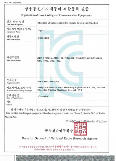 烘干機韓國KC證書