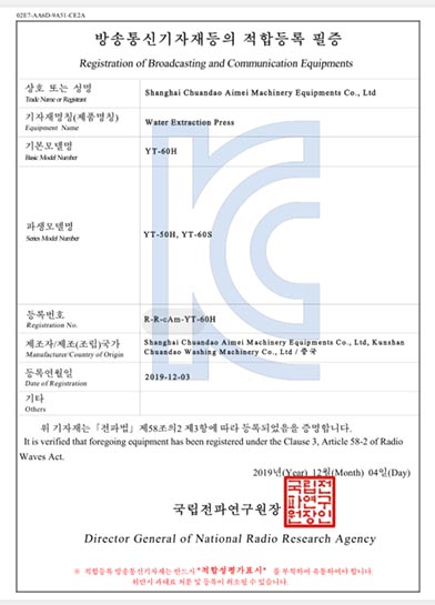 壓榨機韓國KC證書