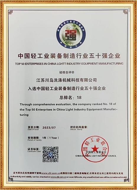 中國輕工業(yè)裝備制造行業(yè)五十強企業(yè)