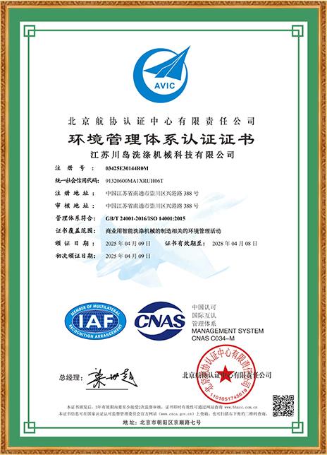 環(huán)境管理體系認證證書